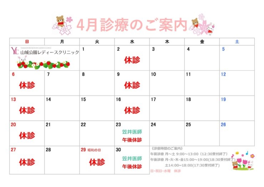 4月診療のご案内 水曜日午前診療開始のお知らせ