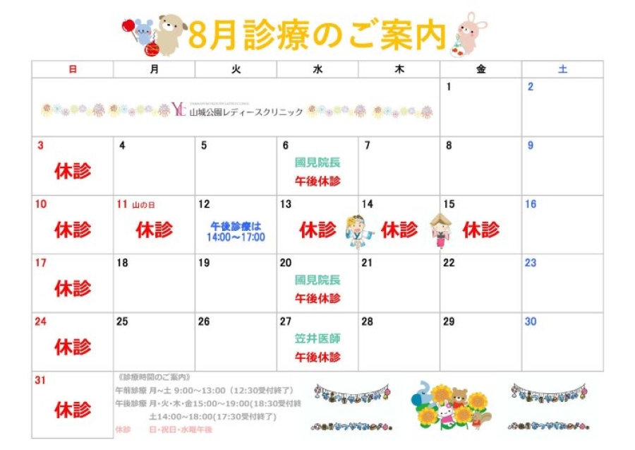 12日の午後診療は14時から17時となります。診療時間が変更となっておりますので、お間違いのないようお気をつけください。